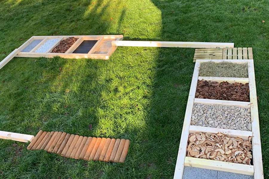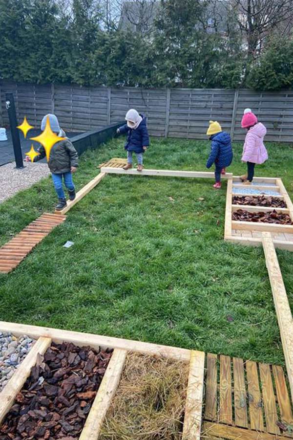 Notre joli jardin aménagé offre un espace de jeux en plein air, un parcours sensoriel pieds nus, un potager avec des herbes aromatiques, …voire des espaces aquatiques en plein été.